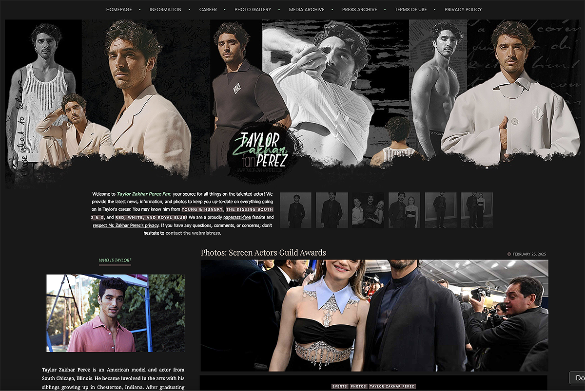 | Welcome to Taylor Zakhar Perez Fan, your source for all things on the talented actor! We provide the latest news, information, and photos to keep you up-to-date on everything going on in Taylor's career. You may know him from Young & Hungry, The Kissing Booth 2 & 3, and Red, White, and Royal Blue! We are a proudly paparazzi-free fansite and respect Mr. Zakhar Perez's privacy. If you have any questions, comments, or concerns; don't hesitate to contact the webmistress. |
